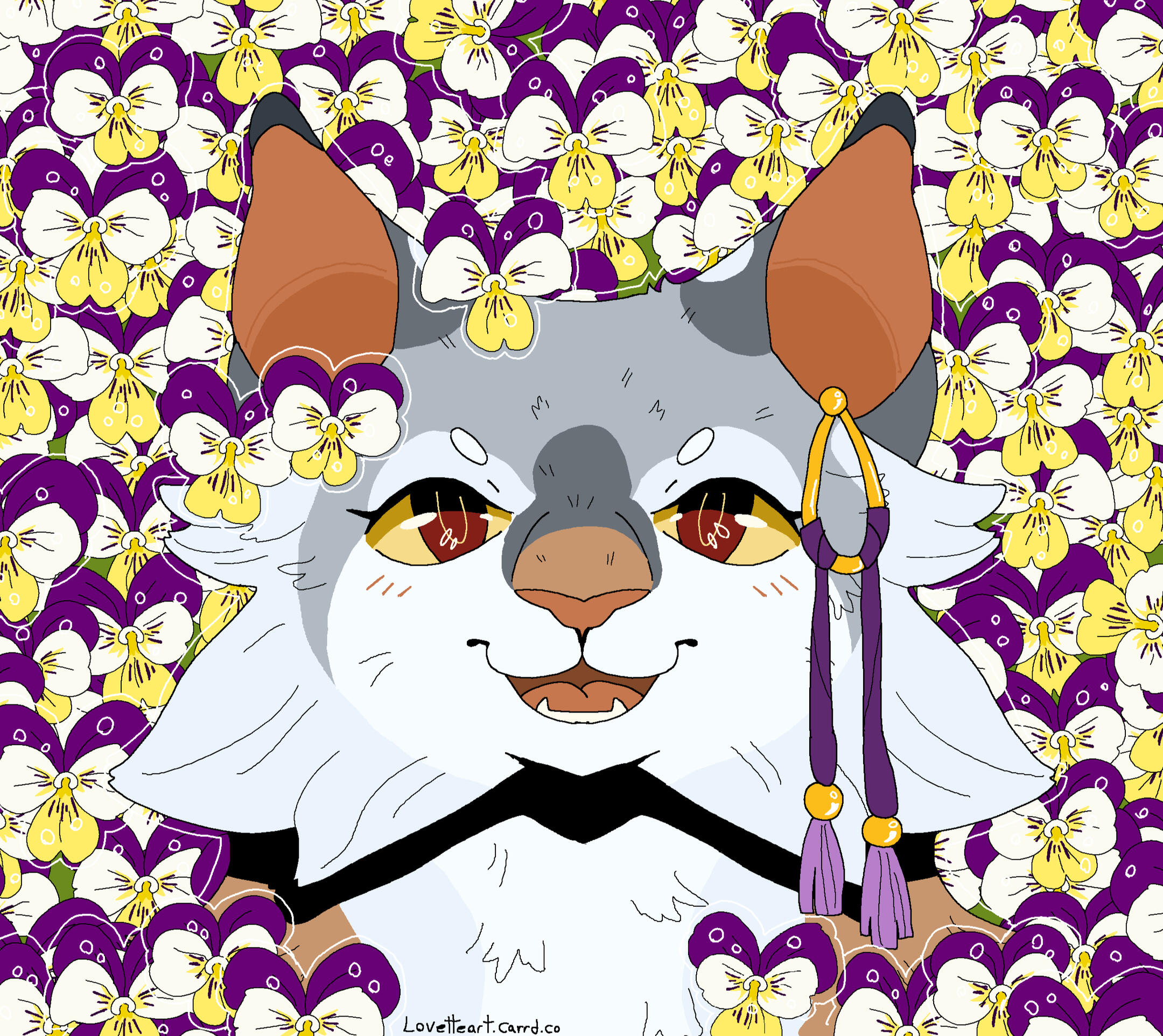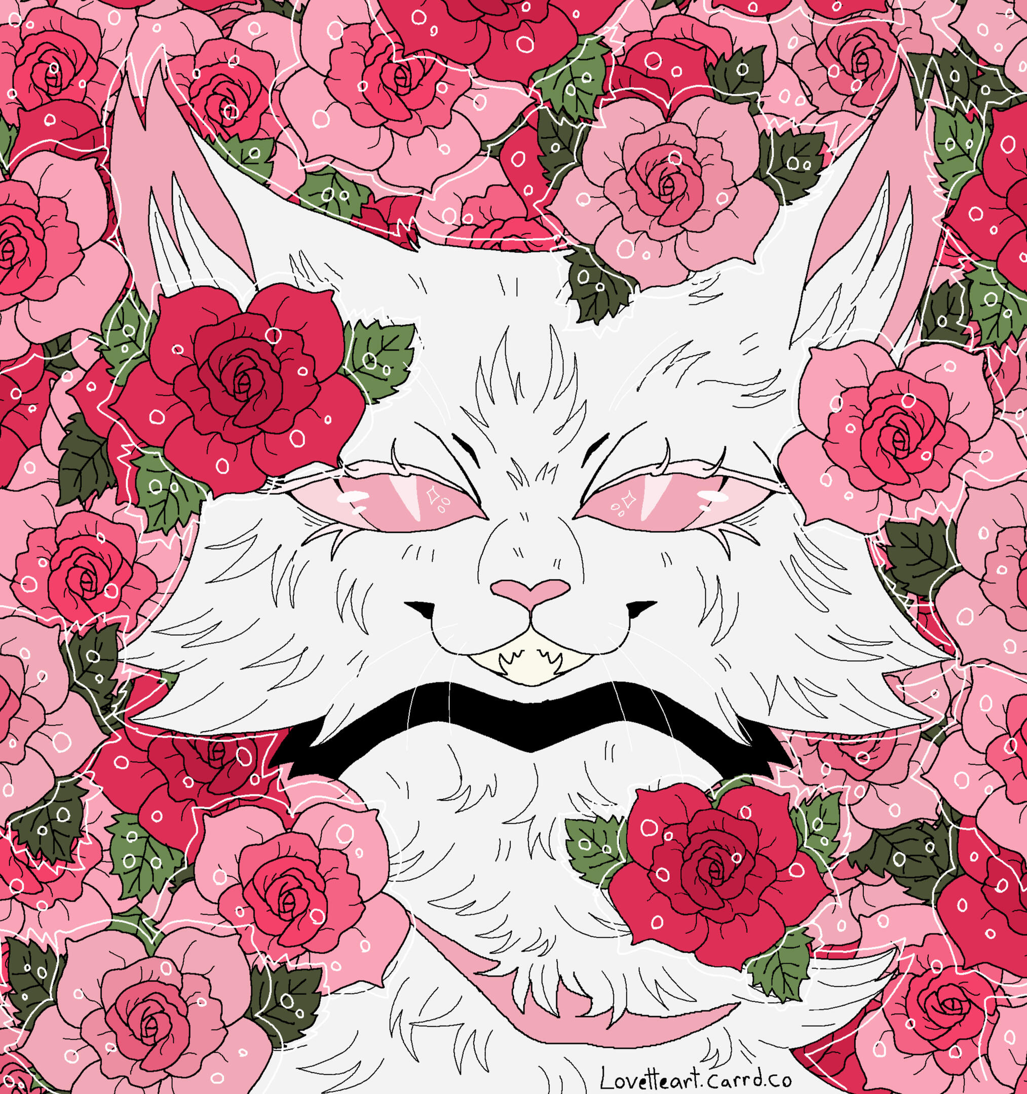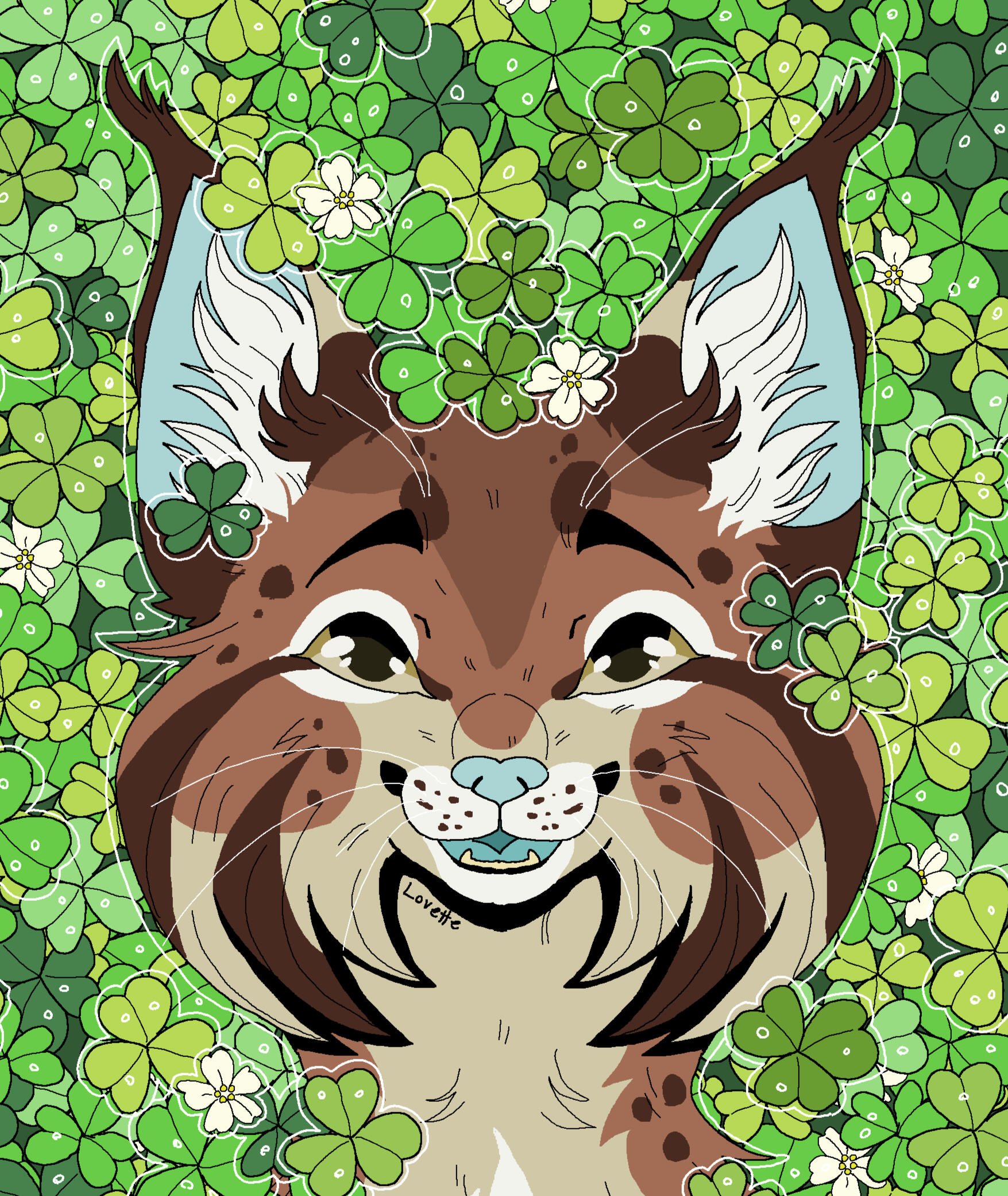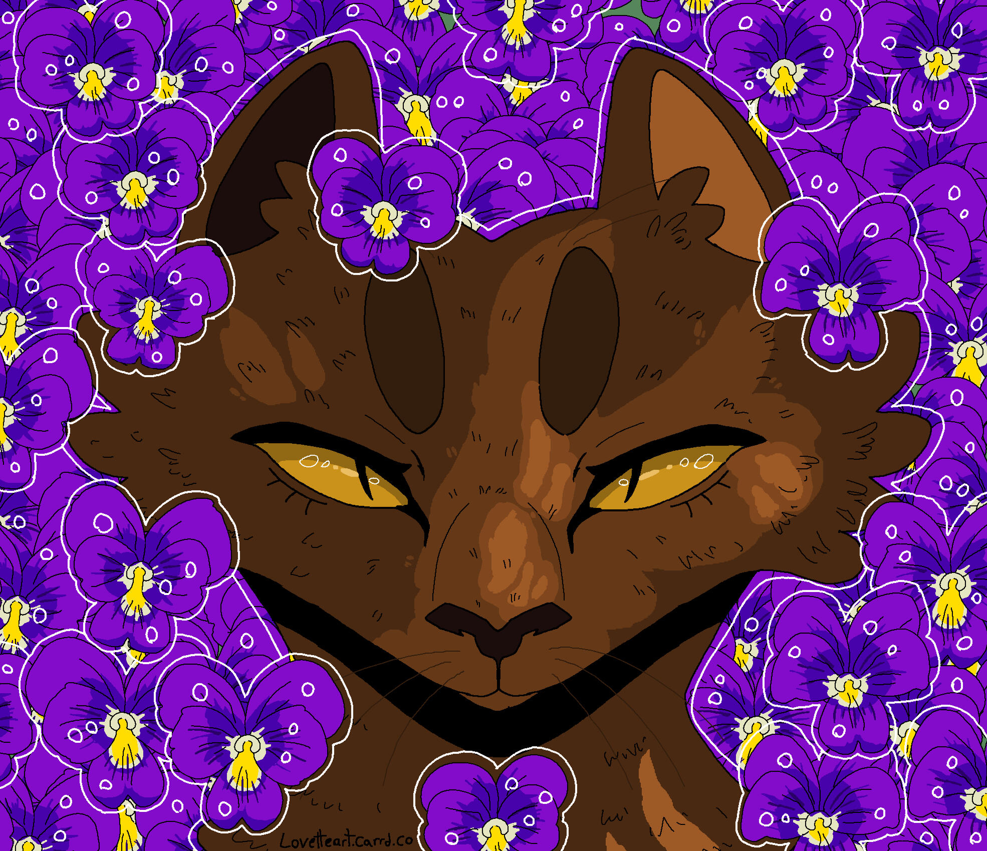 Description: A symmetrical headshot with a floral background. Backgrounds currently available: Shojo Roses, Shamrock Bed , Daisies (may or may not have the white outline depending on how light the daisies are), Leaves (Maple, Oak, Generic or Fall mix) , Poppies, Green Ivy, Violets ( tricoloured or solid), Yellow Buttercups25.00 USD Red Spider lilies (spider lilies will come with a black background and no white outline/ droplets), Blue Forget-me-nots (no white outline/ droplets and your choice of bg colour between pale neutral, green, black or yellow pop), White lilies (no white outline or droplets, set background colour of green)PSA: Lilies are extremely deadly to cats, ingesting them or even inhaling their pollen can cause kidney failure and death within as little as 3 days, please bring your cat to the vet immediately if you suspect any kind of consumption