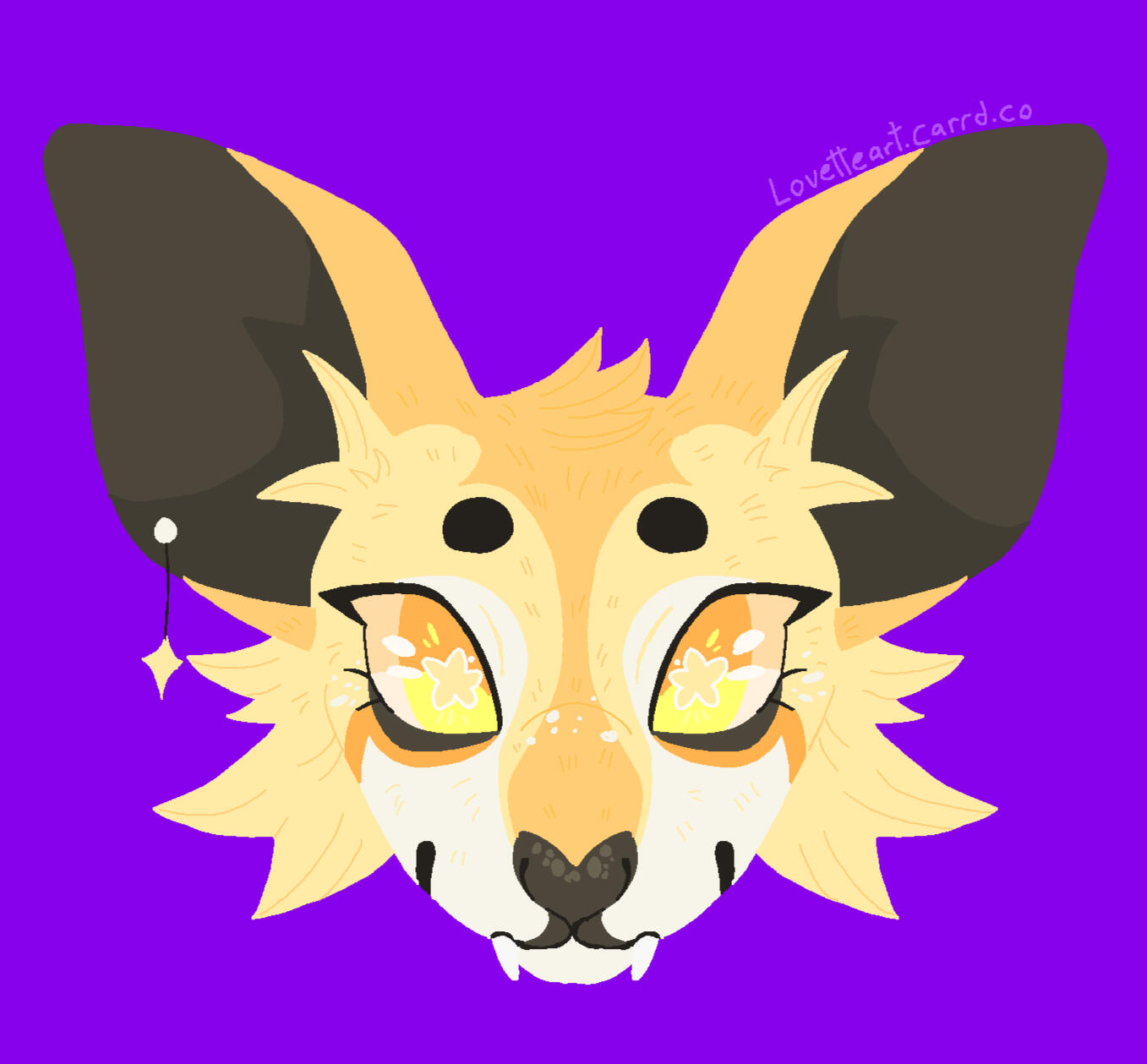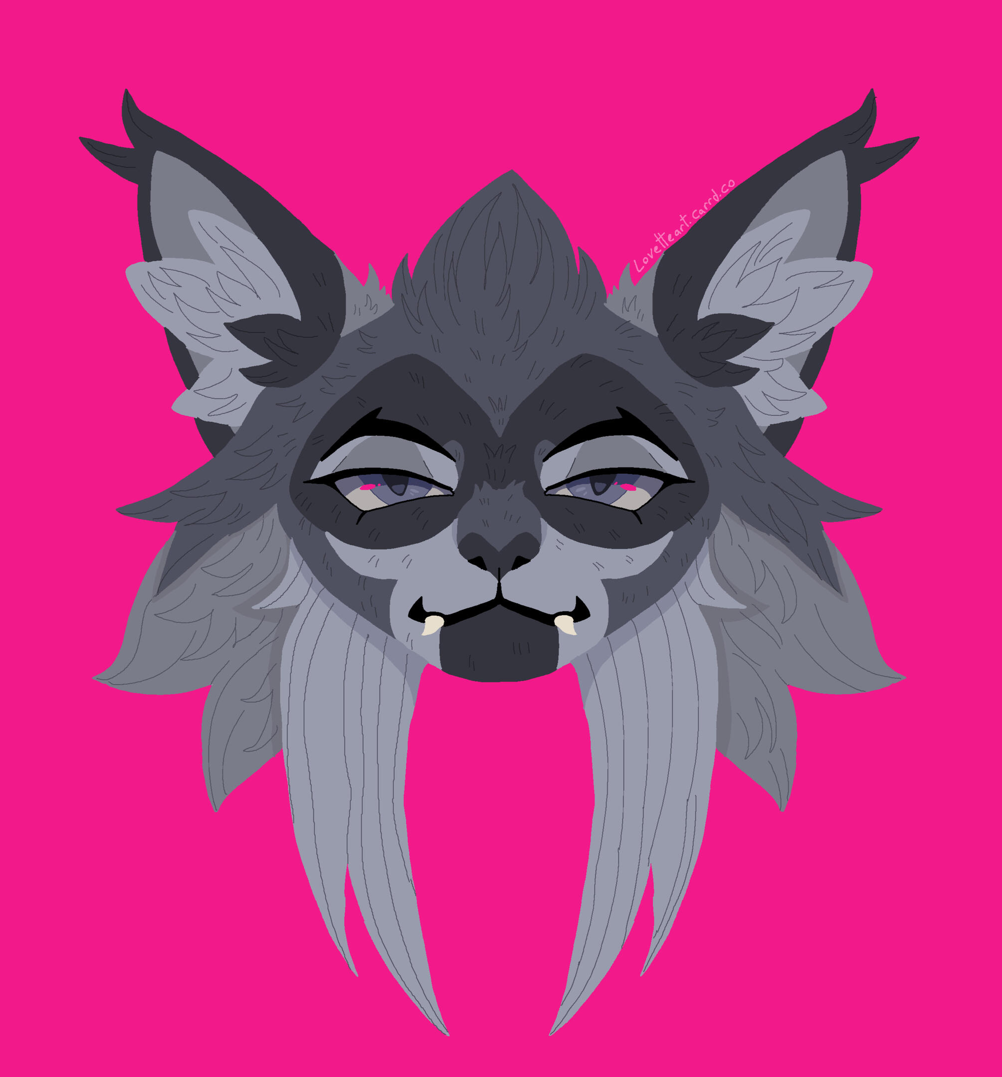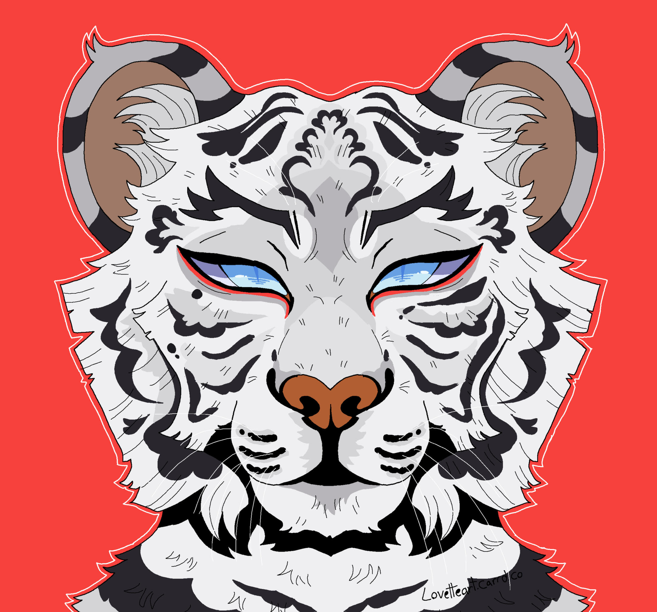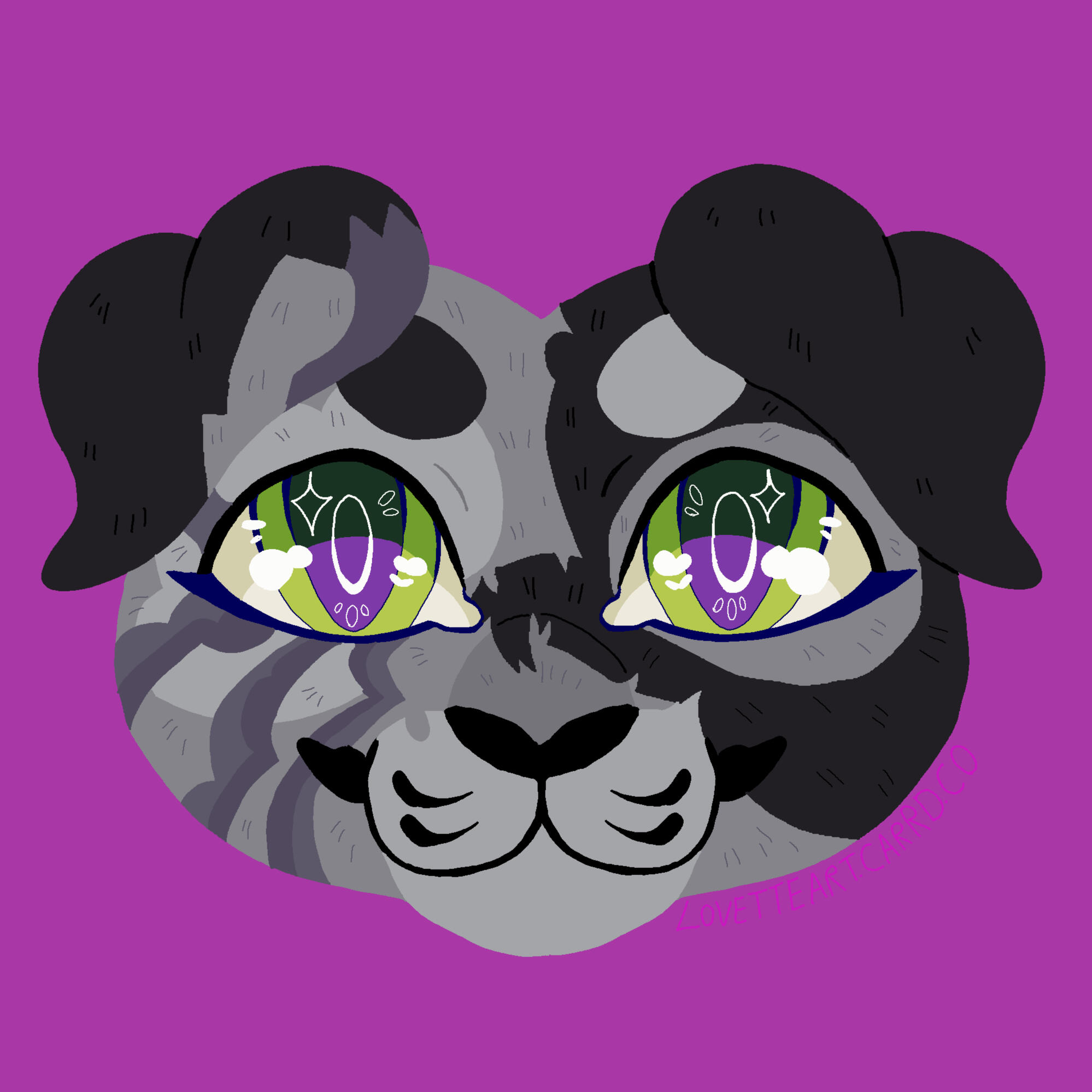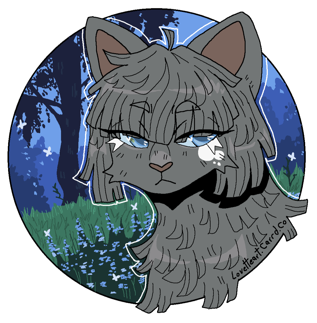 Description: Feline or feral characters. This type of commission is typically a symmetrical headshot of a feline character on a solid background with white outline. other creatures may be requested but prices may vary based on the character such as design/marking complexity, accessories, hair/bangs etc. For anthro/humanoid characters with clothes please see Badge and Button commissions.For designs based on a description or off a real photo, see Custom Headshot Commissions below