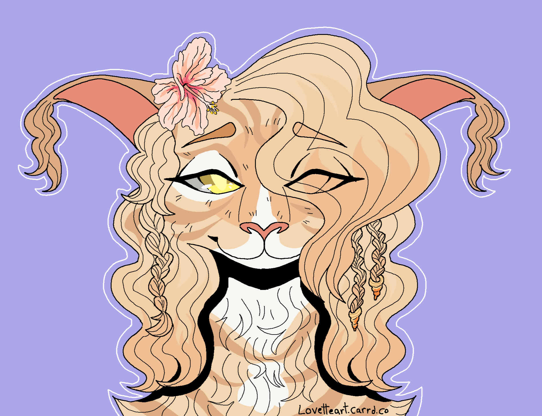 Description: A symmetrical headshot drawn in a lineless style placed on a solid coloured background. Prices may vary depending on species, character complexity, hair style and accessories.